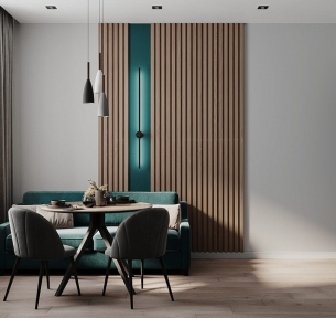 Các sắc thái xanh đậm kết hợp hài hòa với màu xám thời thượng tạo nên một không gian đầy sang chảnh và tràn đầy năng lượng.