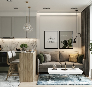 Thiết kế phòng khách căn hộ chung cư theo phong cách hiện đại, đơn giản