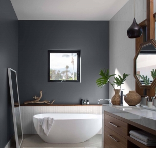 Màu sơn nhẹ nhàng tạo không gian thư giãn trong phòng tắm
