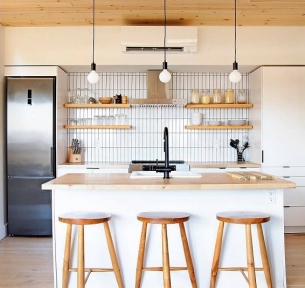 Đảo bếp bằng gỗ trong nhà bếp không phải là một ý tưởng mới nhưng đang được ưa chuộng khi kết hợp cùng nhiều yếu tố khác giúp làm mới không gian bếp.